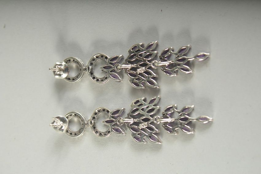 A PAIR OF SILVER MARCASITE WATERFALL EARRINGS, boxed.
