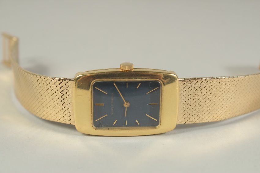 A GENTLEMAN'S 18CT GOLD WRISTWATCH by GIRARD-PERREGAUX with dark blue.