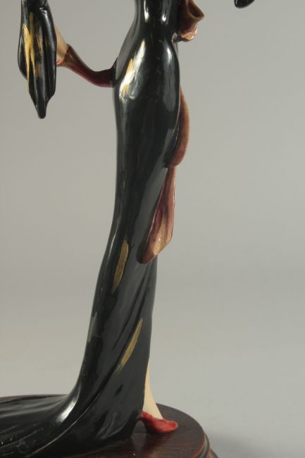 AN ART DECO PORCELAIN LADY in a black dress. 17ins high.