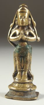 AN 18TH-19TH CENTURY SOUTH INDIAN BRONZE FIGURE OF HANUMAN, 9cm high.