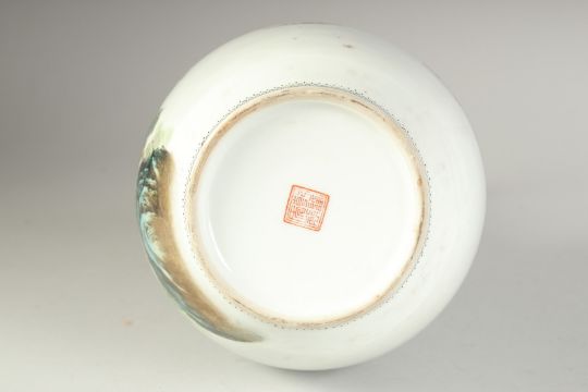 A CHINESE REPUBLIC PORCELAIN VASE, painted with a landscape scene, with red character mark to base, 28.5cm high.