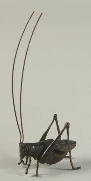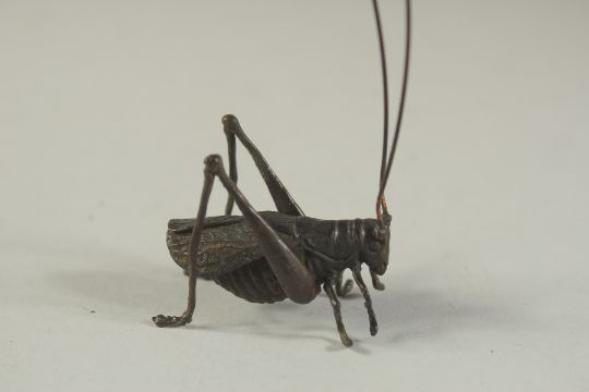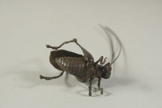 A BRONZE OKIMONO OF A KATYDID, 4cm long.