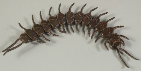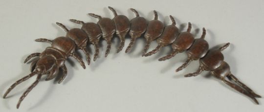 AN ARTICULATED BRONZE OKIMONO OF A CENTIPEDE, 15.5cm long.