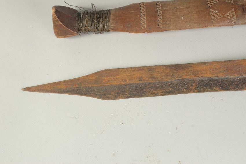 AN AFRICAN WOODEN DAGGER, 43cm long.