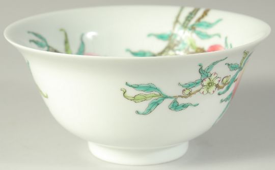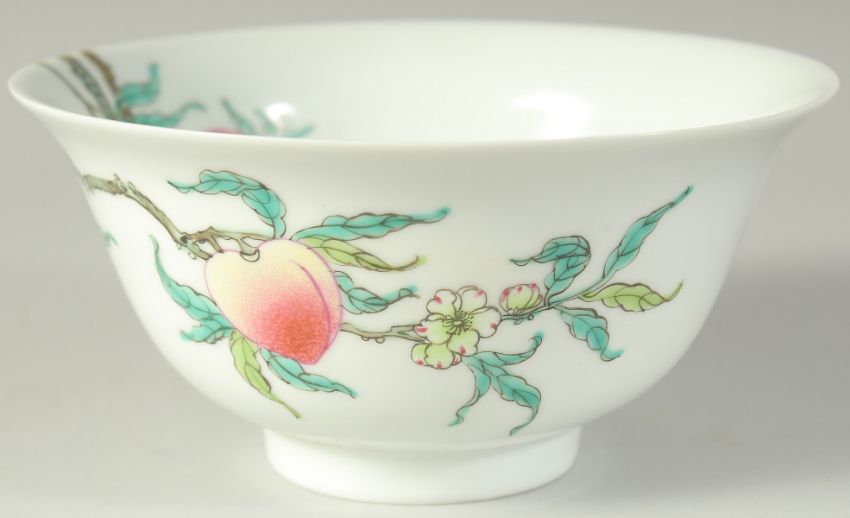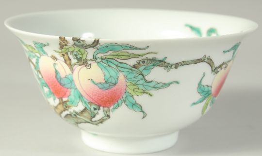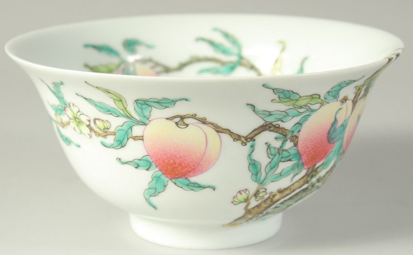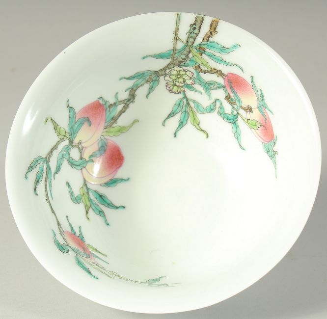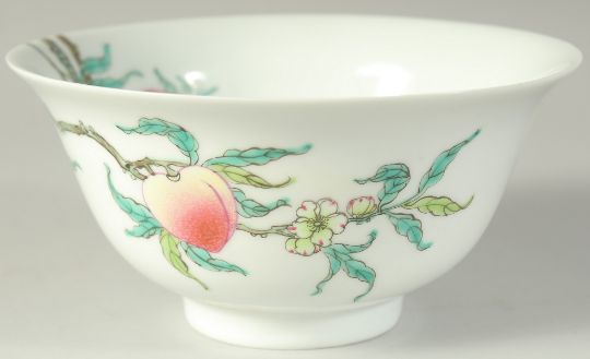 A CHINESE FAMILLE ROSE PORCELAIN PEACH BOWL, 15.5cm diameter.