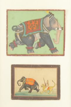 TWO LATE 19TH -EARLY 20TH CENTURY INDIAN MINIATURE PAINTINGS OF ELEPHANTS, framed and glazed.