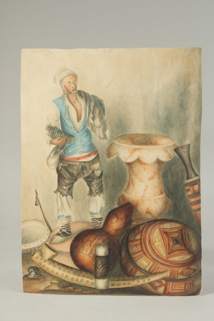 A 19TH CENTURY ORIENTALIST PAINTING ON PAPER, 38.5cm x 28cm.