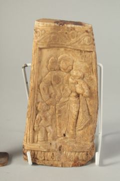 TWO 18TH-19TH CENTURY SOUTH EAST ASIAN BONE CARVINGS, plaque 15.5cm, figure 12cm high (2).