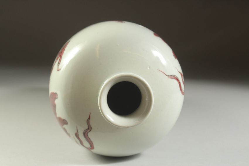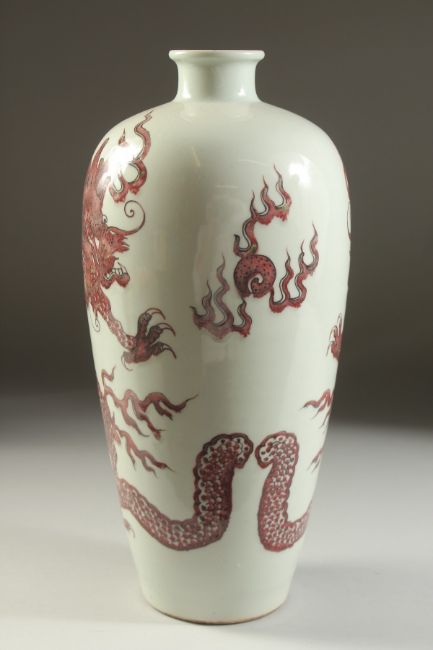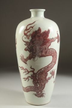 A FINE CHINESE UNDERGLAZE RED PORCELAIN DRAGON VASE, the base with character mark, 33cm high.