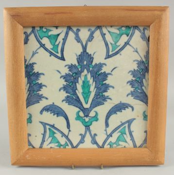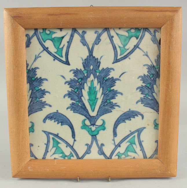 A FINE 16TH-17TH CENTURY IZNIK STYLE OTTOMAN DAMASCUS TILE, framed, tile 25cm square.