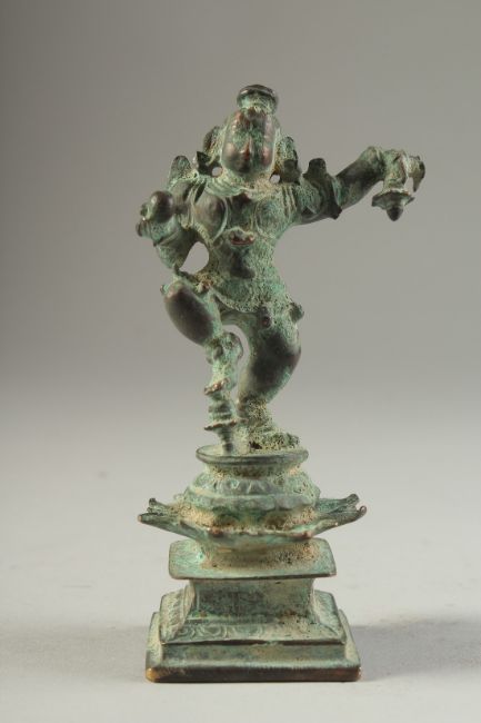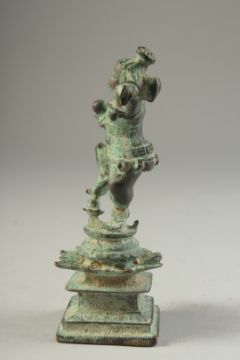 A FINE 16TH-17TH CENTURY SOUTH INDIAN BRONZE FIGURE OF BABY KRISHNA, stand on a lotus form base, 13cm high.