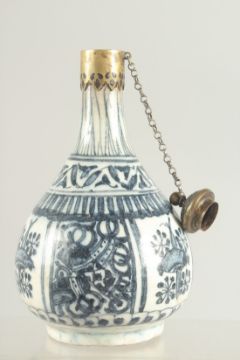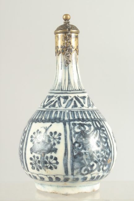 AN ISLAMIC BLUE AND WHITE PORCELAIN BOTTLE VASE, for the Chinese market, 19cm high.