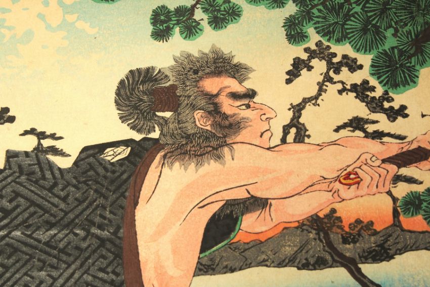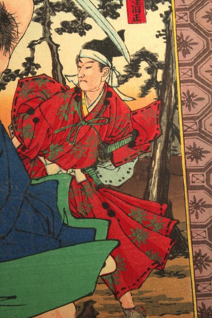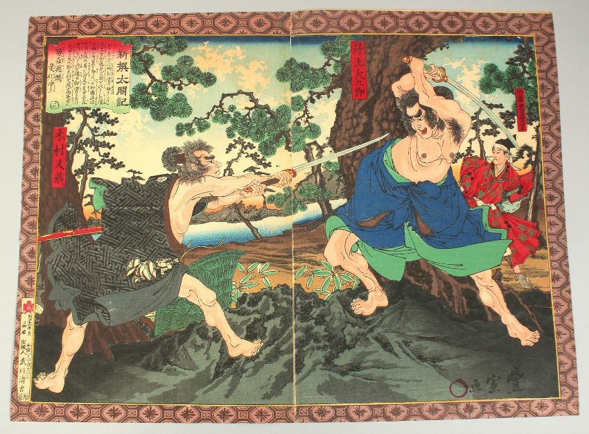 TOYONOBU UTAGAWA (1859-1886): FROM THE SERIES OF NEWLY SELECTED RECORDS OF THE TAIKO HIDEYOSHI; a late 19th century original Japanese woodblock print, diptych (2 part).