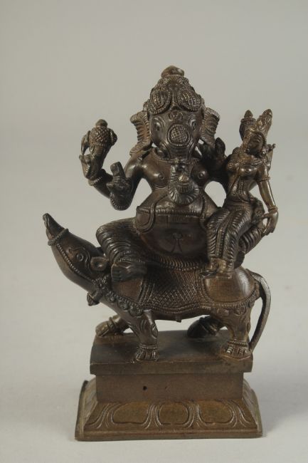 A FINE 19TH CENTURY BRONZE GANESH, 14.5cm high.
