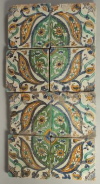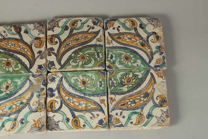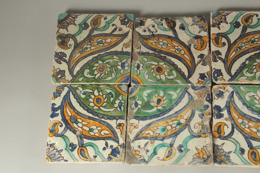 A PANEL OF EIGHT 18TH CENTURY NORTH AFRICAN TUNISIAN TILES.