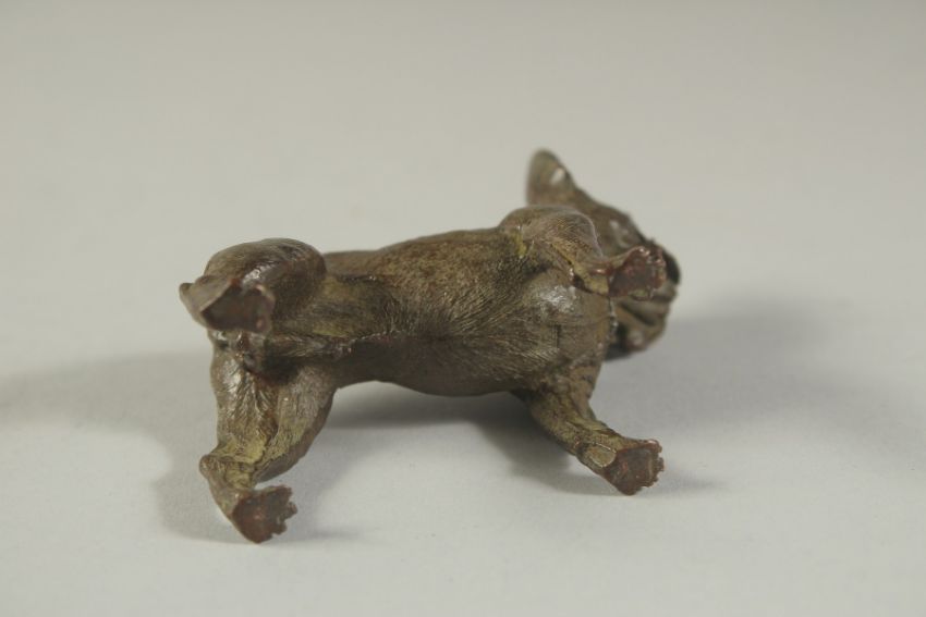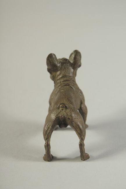 A BRONZE OKIMONO OF A DOG, 7.5cm long.