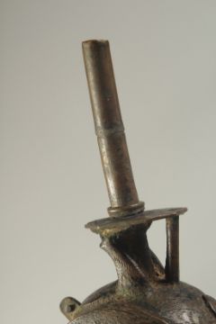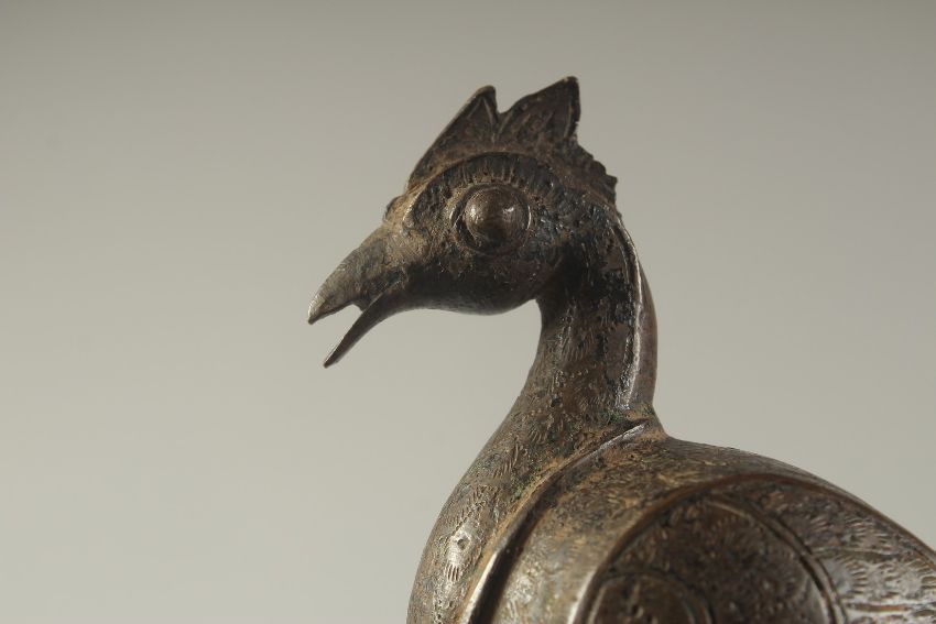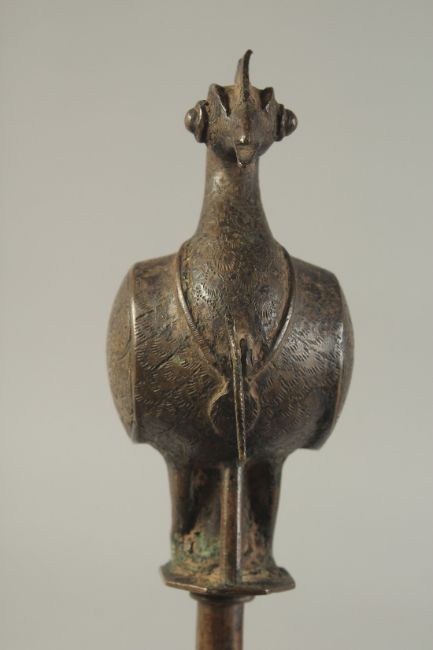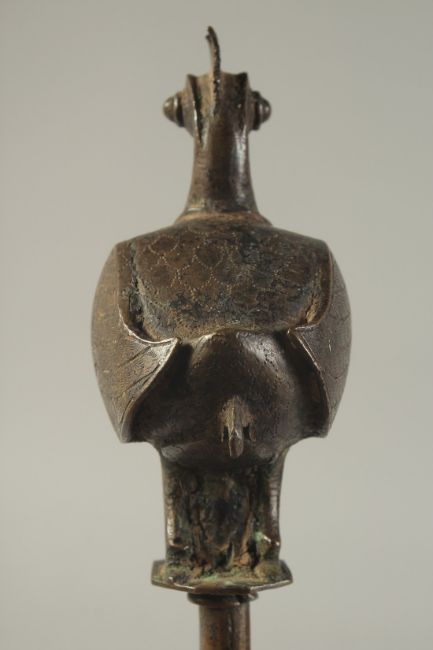 A 19TH CENTURY BRONZE BIRD FINIAL, 21cm high