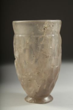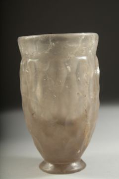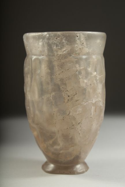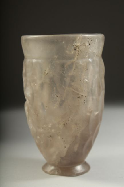 A VERY RARE ANCIENT PERSIAN POSSIBLY SASSANIAN OR AKHAMINID CARVED ROCK CRYSTAL BEAKER, 12cm high.