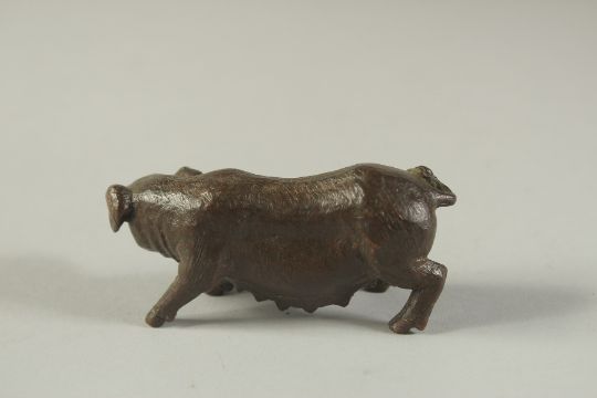 A BRONZE OKIMONO OF A SOW, 7.5cm long.