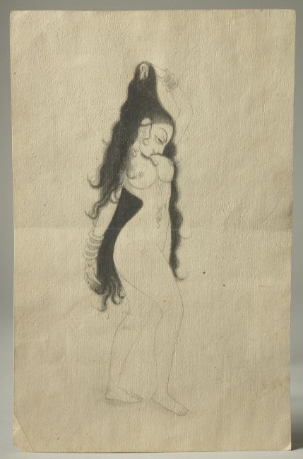AN INDIAN PICTURE OF A NUDE LADY, 30.5cm x 19.5cm.