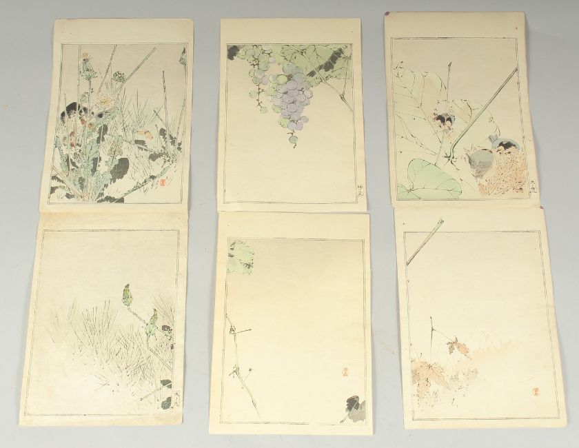 SEITEI WATANABE (1851-1918): FROM THE PICTURE ALBUM OF BIRDS AND FLOWERS, 1903; three original Japanese woodblock prints (diptychs), (6).