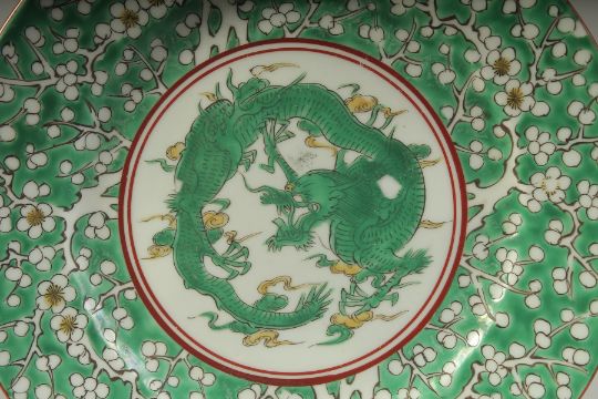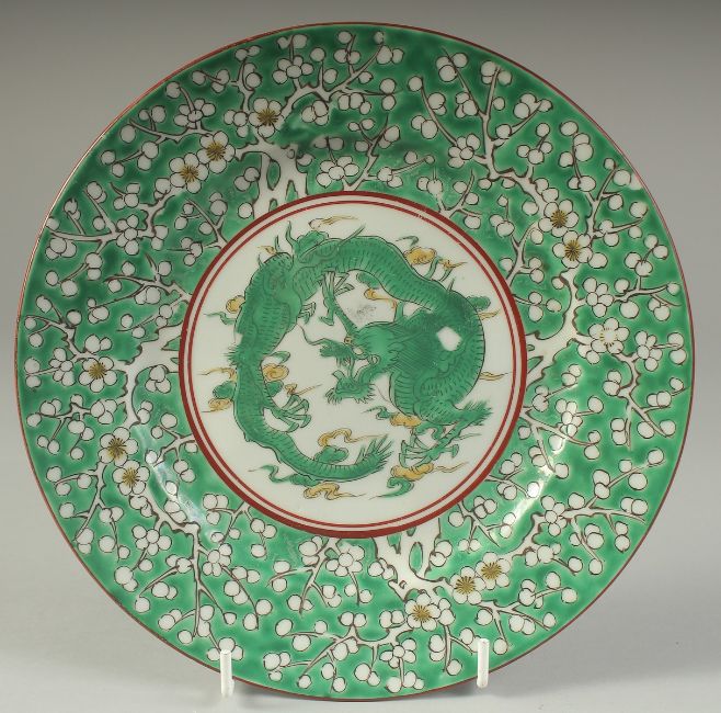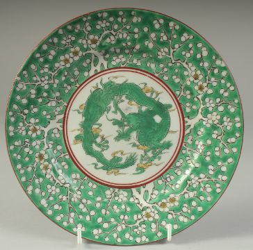 A JAPANAESE MEIJI PERIOD DRAGON DISH, character mark to base, 21cm diameter.