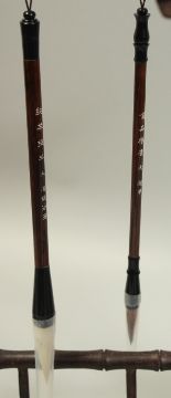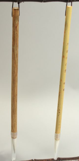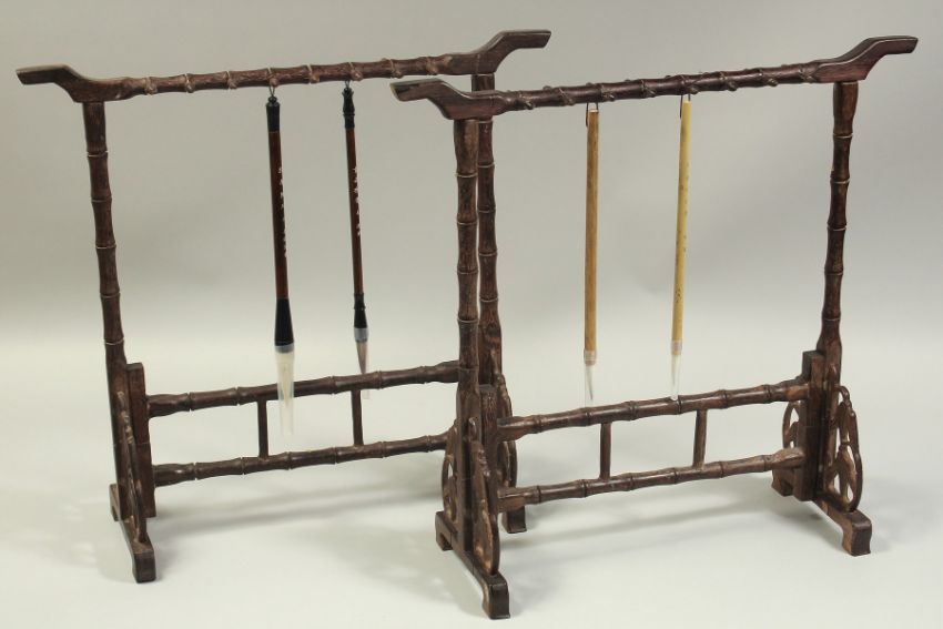 A PAIR OF CHINESE CALLIGRAPHY BRUSH STANDS, each with a couple of brushes.