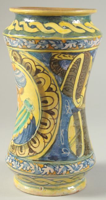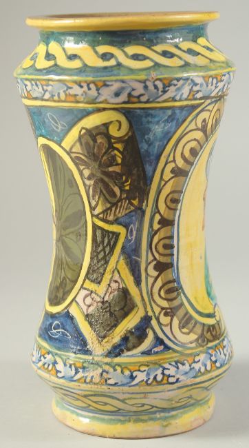AN 18TH-19TH CENTURY CANTAGALLI OTTOMAN MARKET POTTERY JAR, painted with a portrait of male figure, 25cm high.