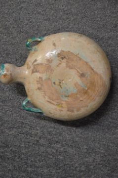 An Islamic pottery pilgrim flask with painted decoration.