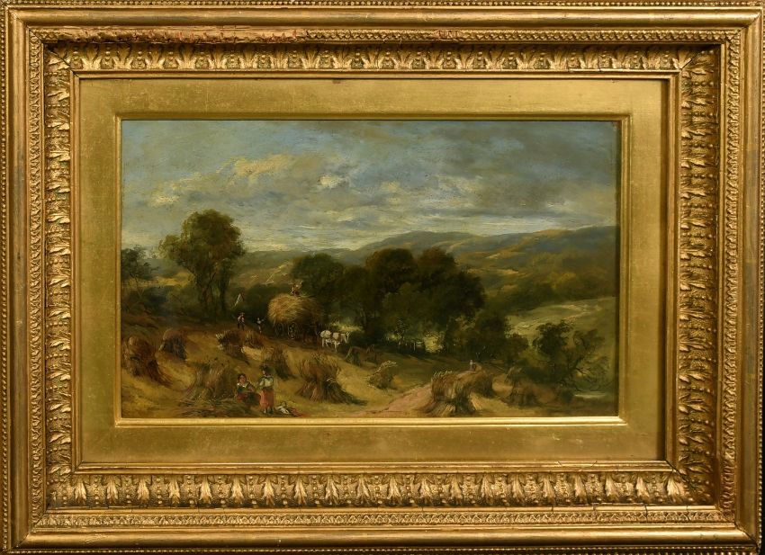 Attributed to Edwin Meadows (late 19th Century), 'Harvesting in Wharfedale', oil on panel, inscription verso, 9" x 14.5" (23 x 37cm).