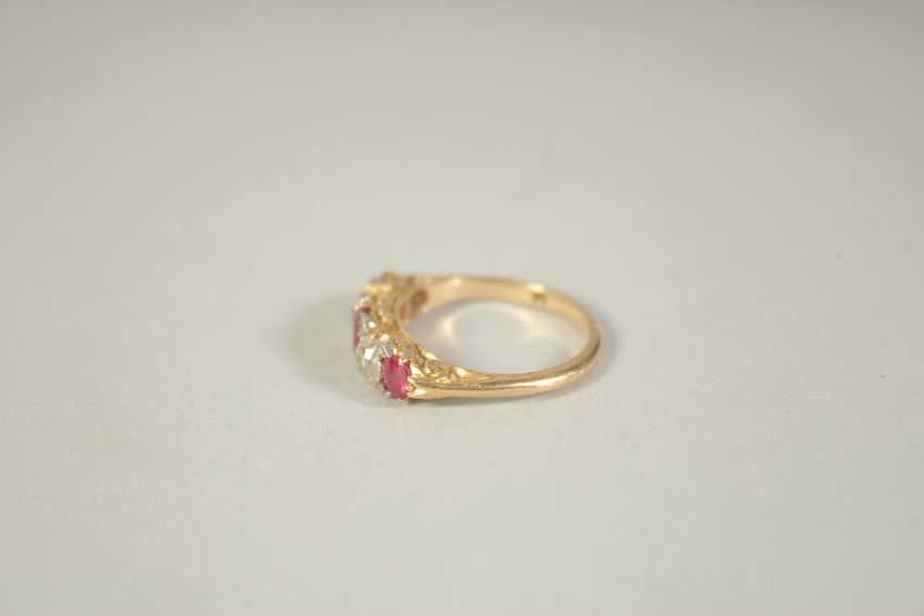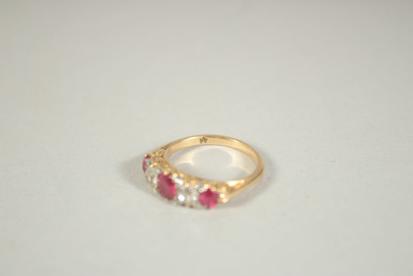 A FIVE STONE RUBY AND DIAMOND RING,