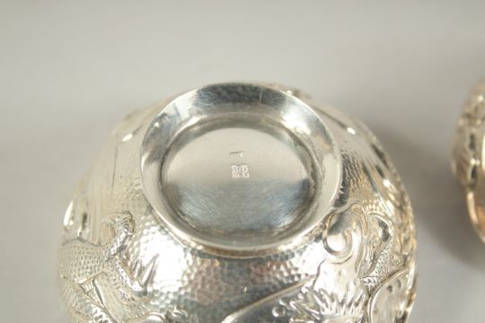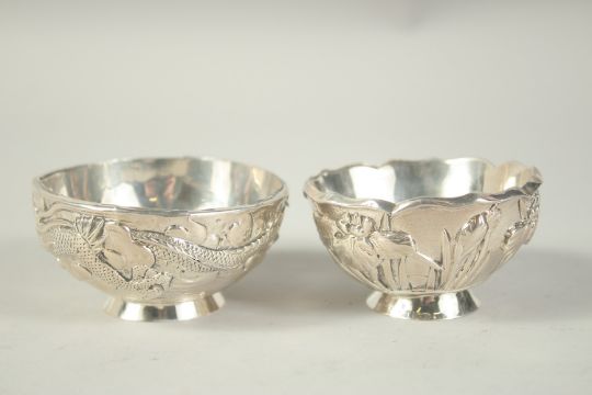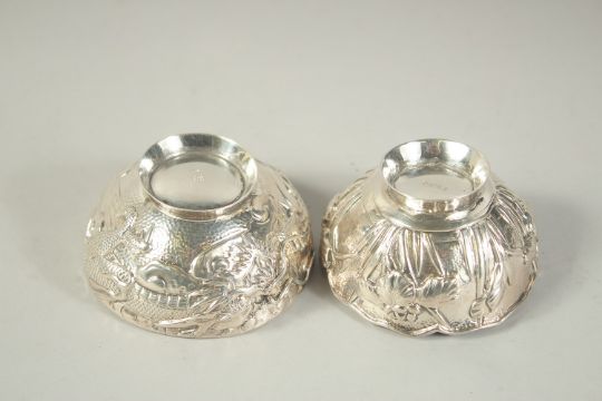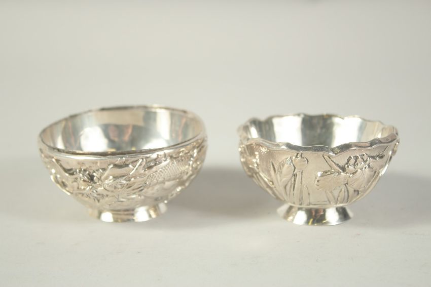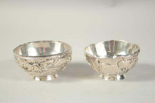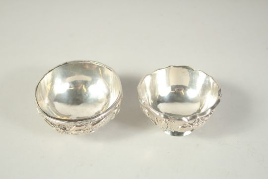 TWO SMALL CHINESE SLIVER CIRCULAR BOWLS.