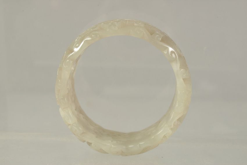 A GOOD CHINESE PIERCED AND CARVED BANGLE.