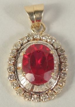 AN 18CT GOLD DIAMOND PENDANT with baguette and round diamonds