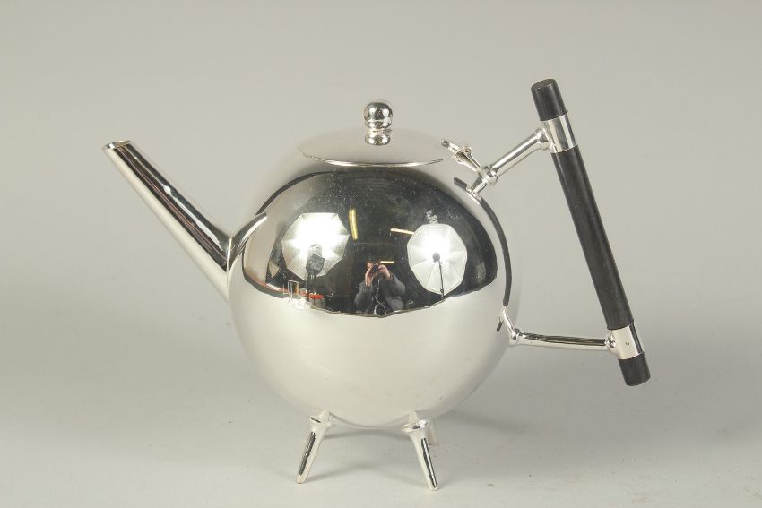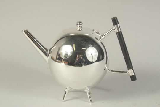 A CHRISTOPHER DRESSER DESIGN PLATED TEAPOT, large bulbous.