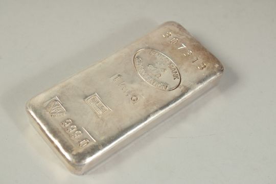 A KILO OF BULLION SILVER. No. 307313., Swiss Bank corporation, with certificate.