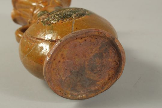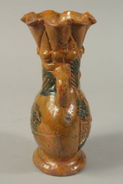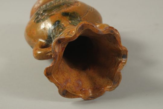 A TWO-HANDLED STONEWARE VASE with sun gods.