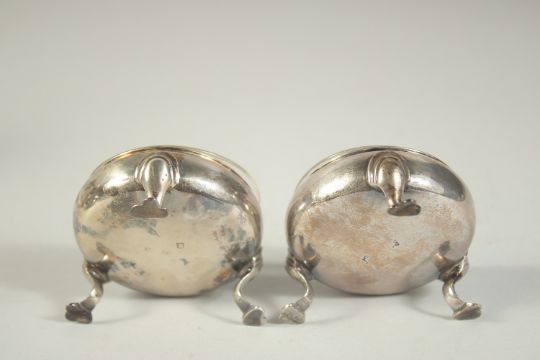 A PAIR OF GEORGE III CIRCULAR SILVER SALTS on three pad feet.