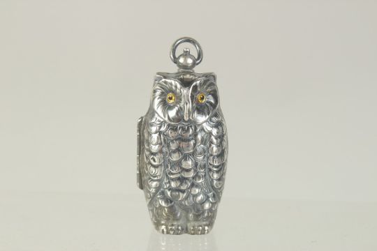 A SILVER PLATED OWL DOUBLE SOVEREIGN CASE