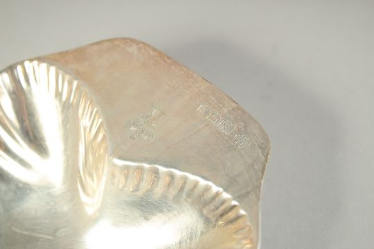 A PAIR OF SILVER SHELL SHAPE BUTTER DISHES AND KNIVES in a fitted case.