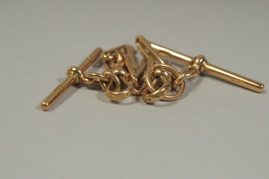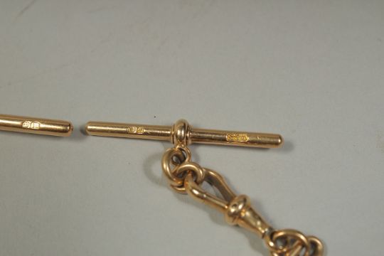 AN 18CT GOLD CHAIN (WATCH GUARD) 7ins long.