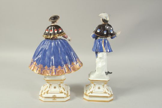 A PAIR OF MEISSEN PILGRIMS, the shell signifying the pligrimage to Santiago Compostela, Spain.