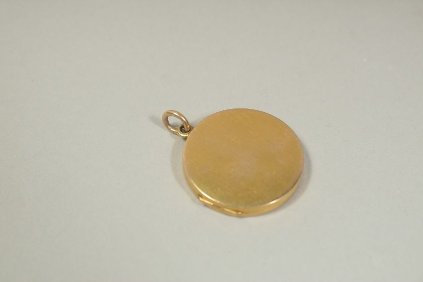 A 15CT GOLD CIRCULAR LOCKET.