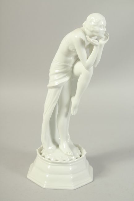 A ROSENTHAL WHITE FIGURE OF A DANCER.
