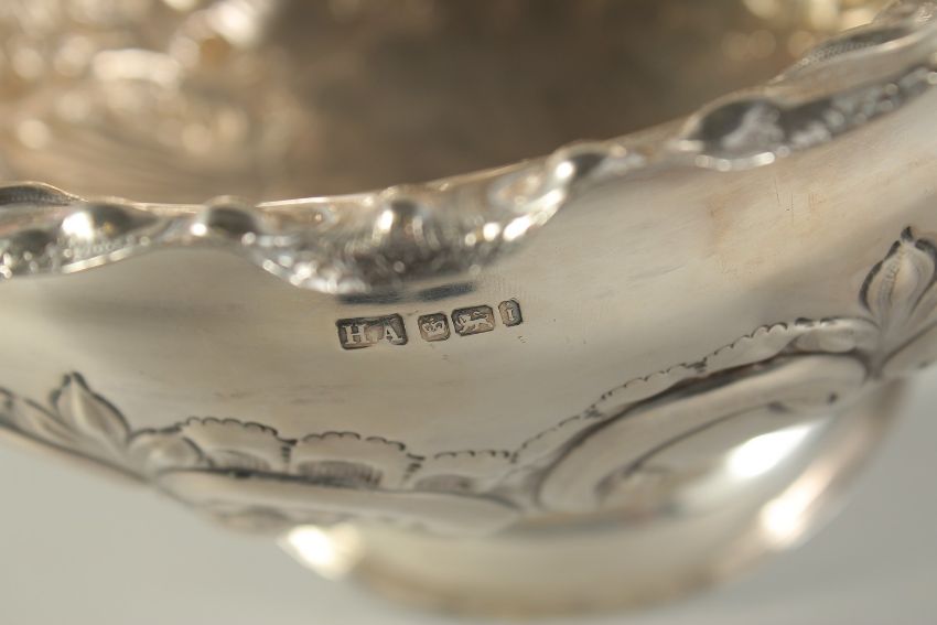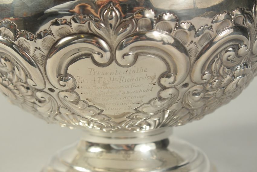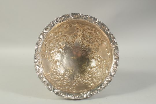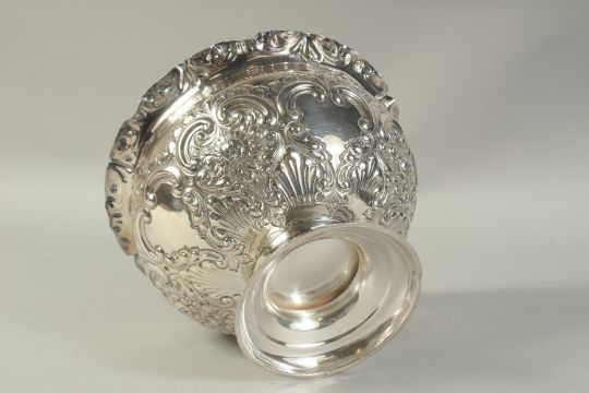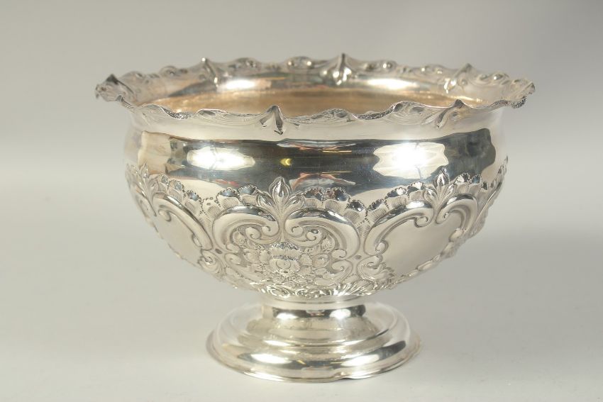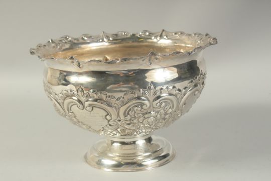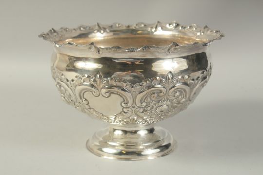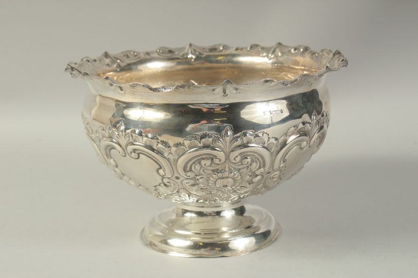 A GOOD CIRCULAR SILVER ROSE BOWL with repousse decoration.
