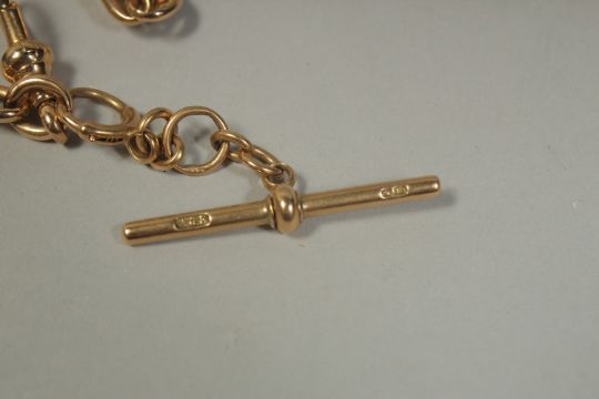 AN 18CT GOLD CHAIN (WATCH GUARD) 18ins long.