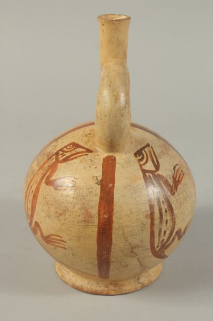 AN EARLY MOCHE BOTTLE VASE painted with iguanas.