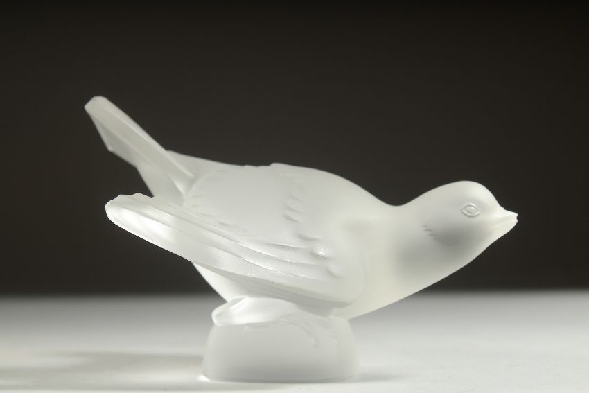 A LALIQUE GLASS BIRD.