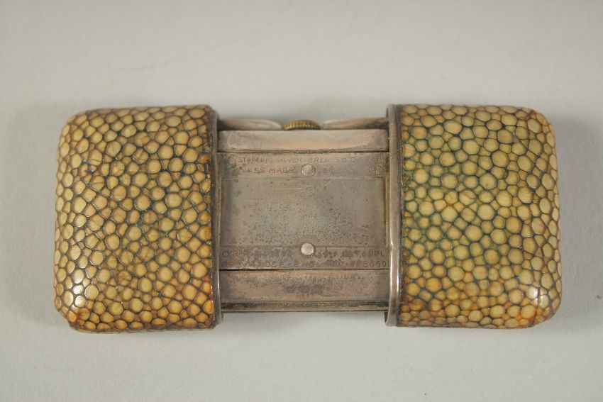 A MOVADO CHRONOMETRE STERLING SILVER TRAVELLING WATCH with pull apart shagreen case.
