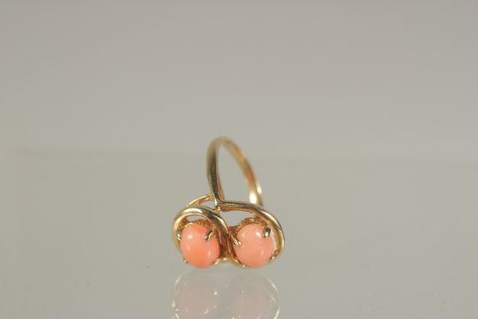 A GOLD DOUBLE CORAL CROSSOVER RING.